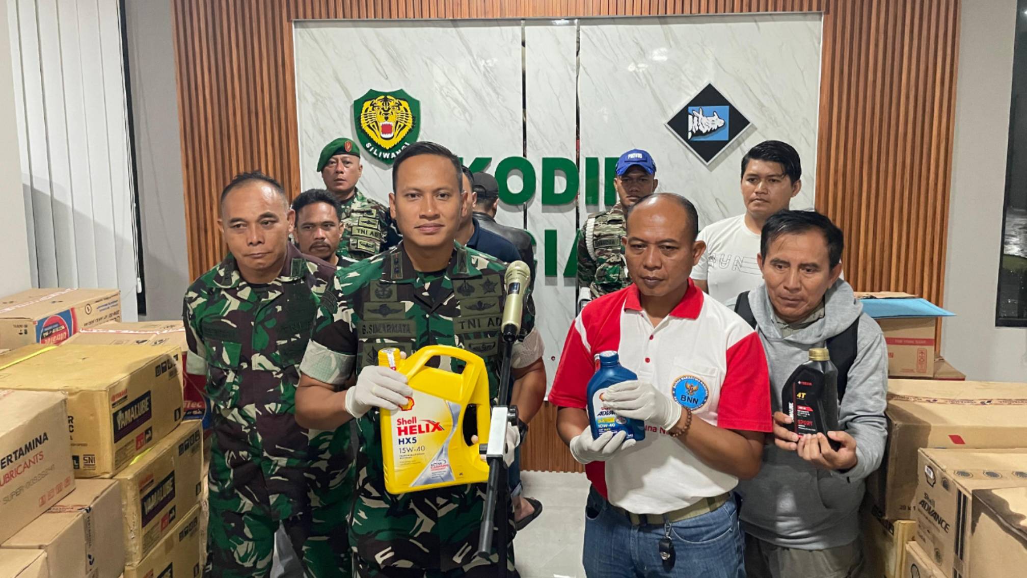 “Dari lokasi kami amankan sekitar 3.500 botol oli berbagai merek terkenal seperti MPX2, Federal Ultratech, Pertamina Enduro, Mesran, AHM Oil, dan Yamalux. Semuanya terindikasi produk ilegal,” ujar Dandim.