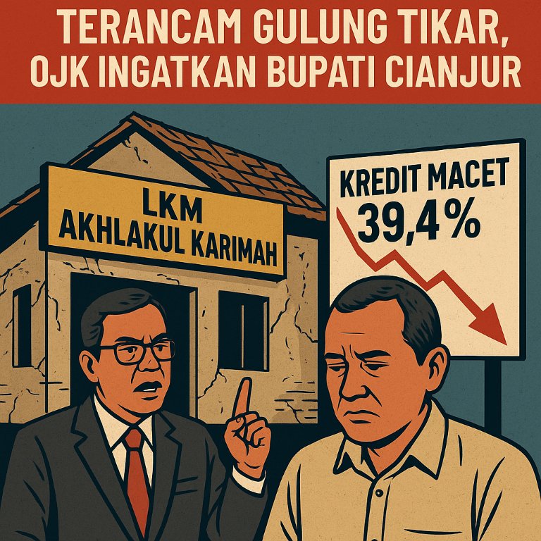 Wartacianjurnews.com – Kondisi Lembaga Keuangan Mikro (LKM) Akhlakul Karimah kian kritis. Kredit macet yang mencapai 39,4 persen membuat Otoritas Jasa Keuangan (OJK) langsung turun tangan, bahkan menghentikan izin penghimpunan dana untuk sementara.