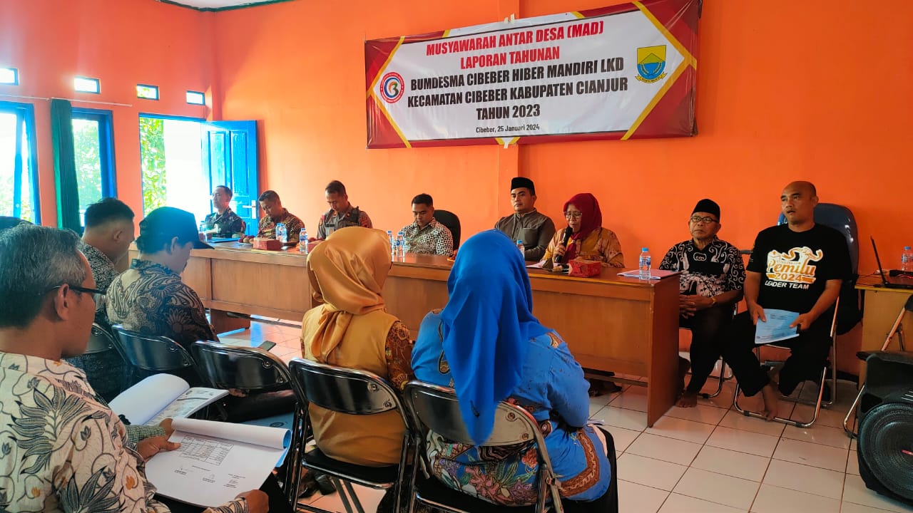 Kegiatan MAD dihadiri Forkopimcam Cibeber, sejumlah Kepala Desa dan para Ketua Kelompok Simpan Pinjam (SPP) digelar di Aula Gedung Bumdesama Cibeber Hiber Mandiri yang berlokasi di Jalan Raya Kramat No. 51 Desa Cihaur Kecamatan Cibeber Kabupaten Cianjur, Kamis (25/01/2024).