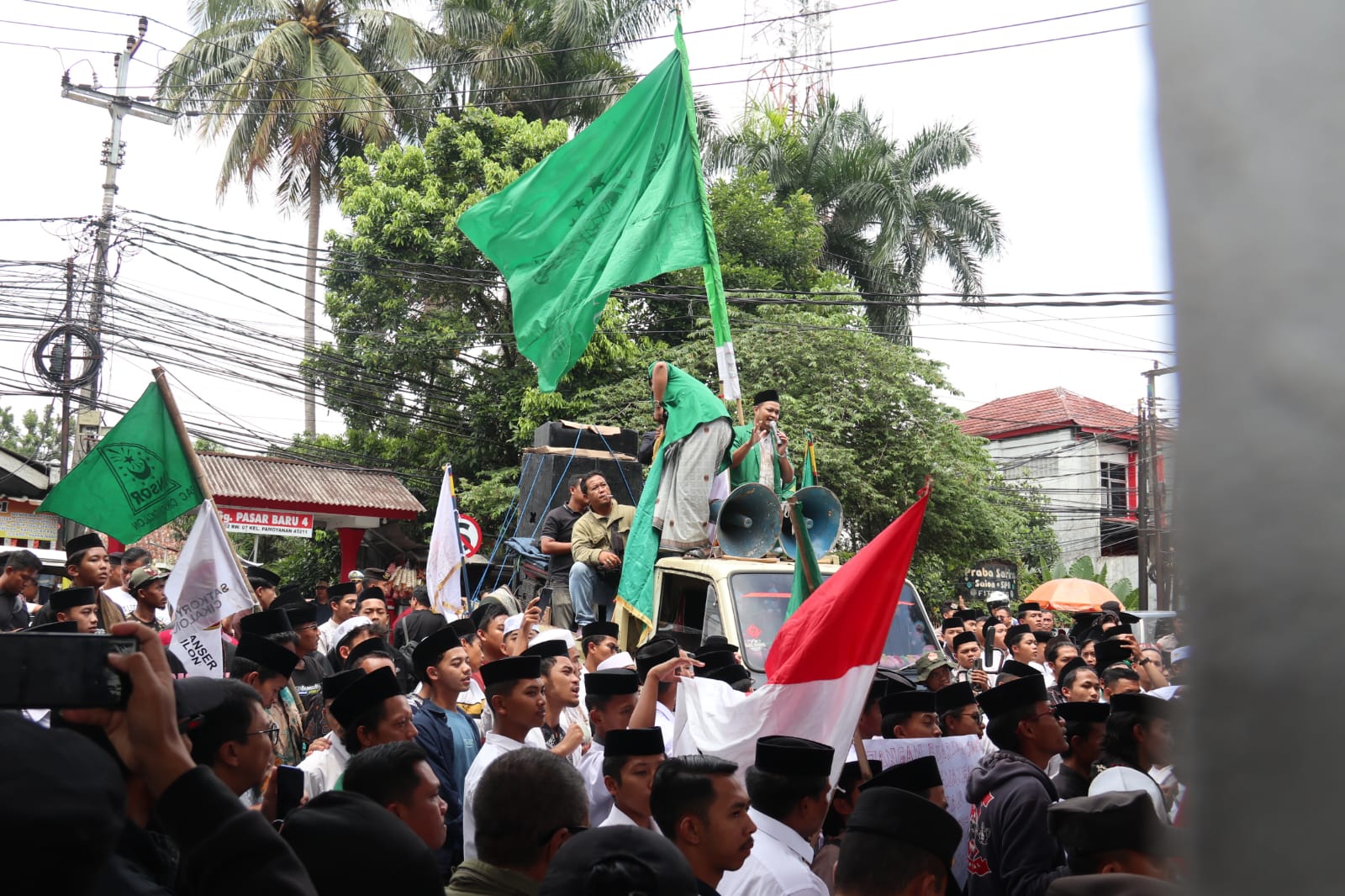Wartacianjurnews.com – Ratusan anggota Gerakan Pemuda Ansor, Banser, santri, dan para guru ngaji turun ke jalan menyuarakan kekecewaan terhadap Bupati dan Wakil Bupati Cianjur. Massa menuding keduanya gagal merealisasikan sejumlah program strategis yang mereka janjikan saat kampanye.