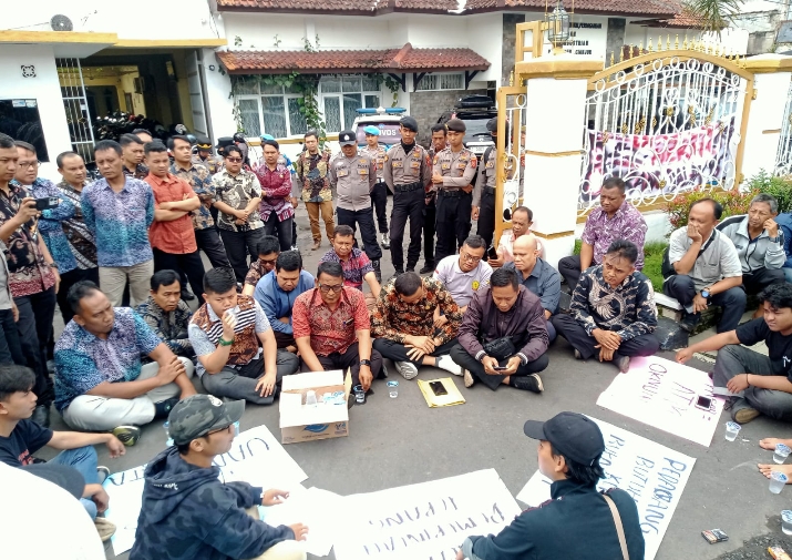 Puluhan aktivis dan perwakilan masyarakat menggelar aksi audiensi di depan kantor Disperindag Kabupaten Cianjur, Kamis (15/1/2025), mempertanyakan transparansi retribusi pasar tradisional yang diduga melampaui ketentuan Perda. Aksi berlangsung dengan pengawalan aparat kepolisian.