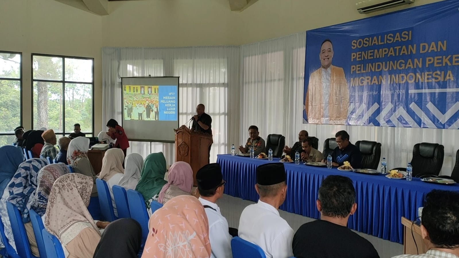 Kegiatan sosialisasi menghadirkan pembicara dari Badan Perlindungan Pekerja Migran Indonesia (BP2MI), dan Kanit PPA Polres Cianjur, dilaksanakan di gedung aula Vedca Raped, di Jalan Raya Jangari, Km 14, Desa Sukajadi Kecamatan Mande Kabupaten Cianjur, Jumat (08/03/2024).