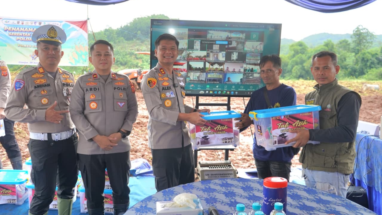 Selain melakukan penanaman bibit jagung secara simbolis, Polres Cianjur juga menyalurkan bantuan Alat dan Mesin Pertanian (Alinstan) serta paket sembako kepada anggota Kelompok Tani (Gapoktan) Bina Bangsa.
