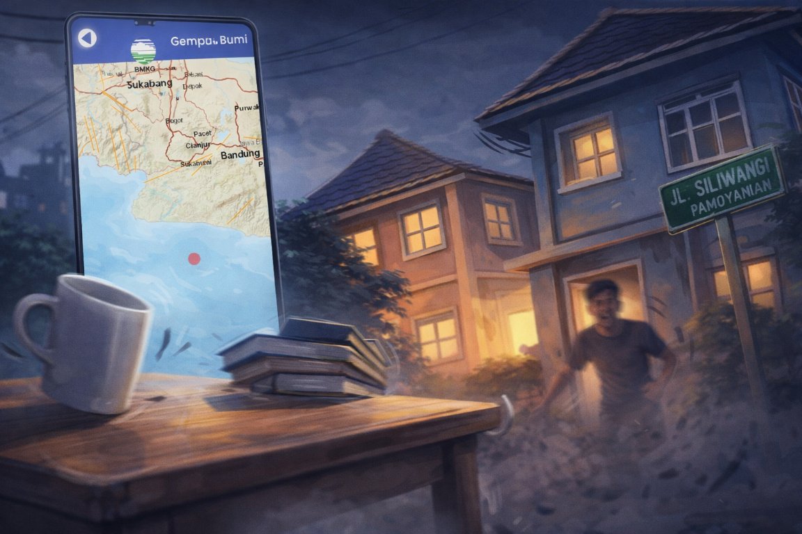 Wartacianjurnews.com – Gempa Sukabumi M5,4 terasa hingga wilayah Cianjur Kota pada Jumat (13/3/2026) dini hari sekitar pukul 02.18 WIB. Getaran gempa dilaporkan dirasakan sejumlah warga di Kelurahan Pamoyanan, Kecamatan Cianjur.