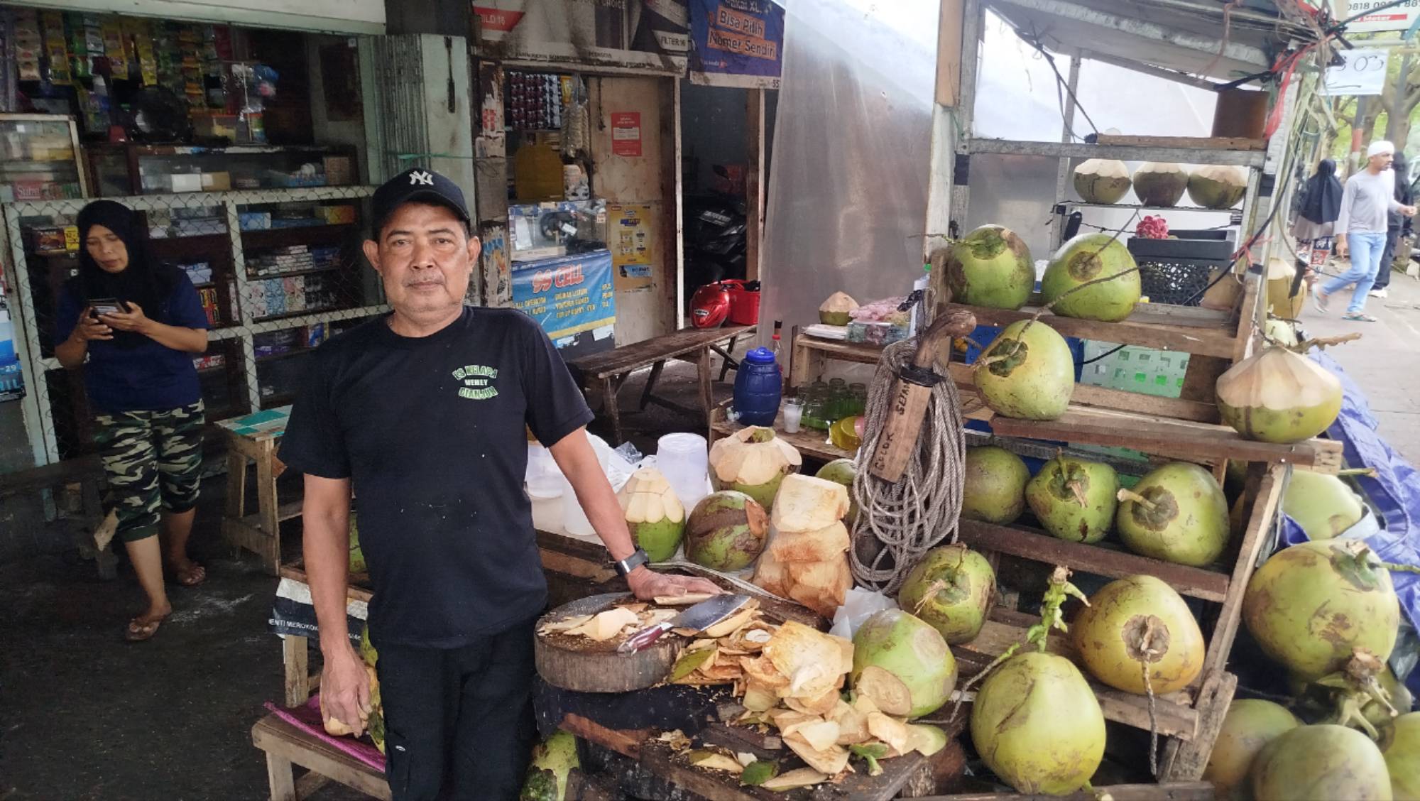 “Kelapa biasa jual Rp10.000 sekarang Rp12.000. Emang naik dari sana, iya betul dari sananya. Saya naik per satunya Rp1.000,” kata Abah Memey saat ditemui, Minggu (15/2/2026).