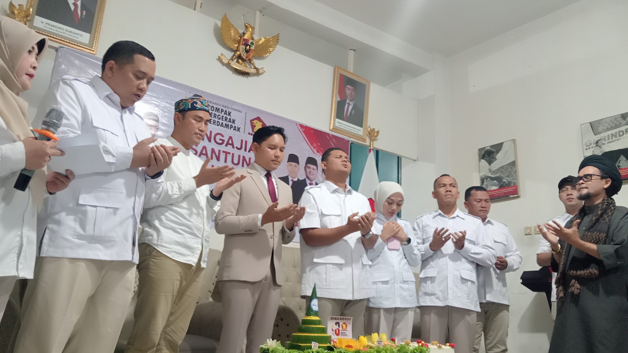 KHIDMAT, HUT Partai Gerindra ke 18 di Sekretariat DPC Gerindra Cianjur berlangsung khidmat dan antusias diikuti para kader. (Dok/Warta Cianjur)