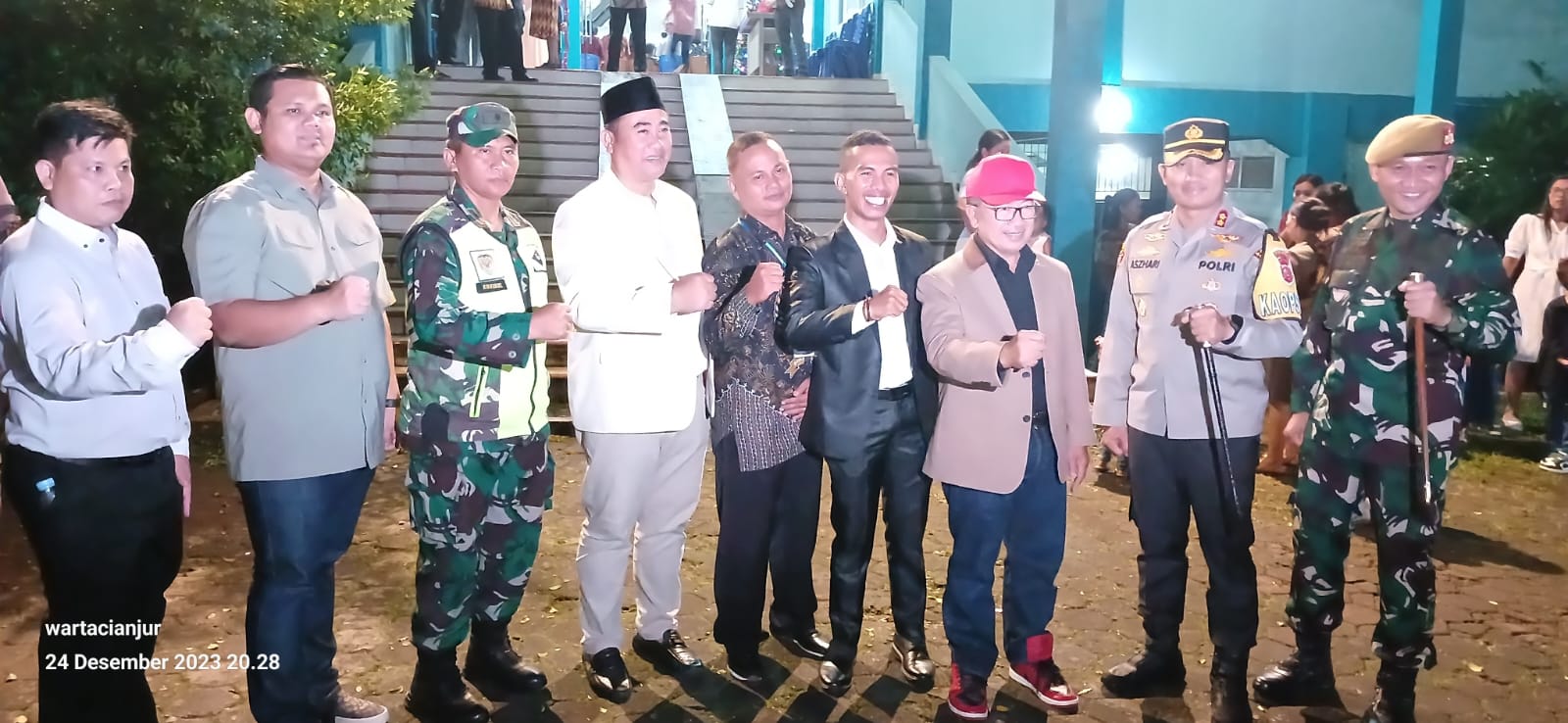 “Natal tahun ini kita wujudkan kedamaian dan ketentraman di cianjur, kami umat katolik merasa bersyukur dengan perhatian dari Forkopimda Kab Cianjur beserta jajaran yang hadir sebelum perayaan natal malam hari membuat kami aman dan tentram dalam menjalankan Natal tahun ini” Ujarnya
