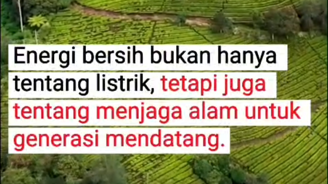 Pada bagian lain, konten juga menyampaikan bahwa energi bersih tidak hanya berkaitan dengan produksi listrik, tetapi juga dikaitkan dengan upaya menjaga alam untuk generasi mendatang.