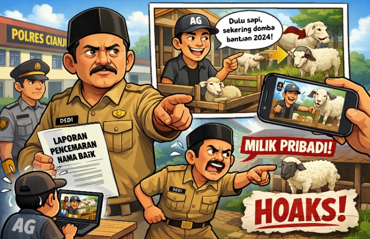 Langkah hukum ini ditempuh menyusul beredarnya sebuah video yang diunggah AG, di mana yang bersangkutan menyebut bahwa ternak domba yang berada di kandang dekat rumah Kepala Desa Cintaasih diduga berasal dari bantuan program Ketahanan Pangan Tahun Anggaran 2024. Bahkan dalam video tersebut, AG menyampaikan narasi bahwa ternak tersebut awalnya adalah sapi yang kemudian “berubah” menjadi domba.