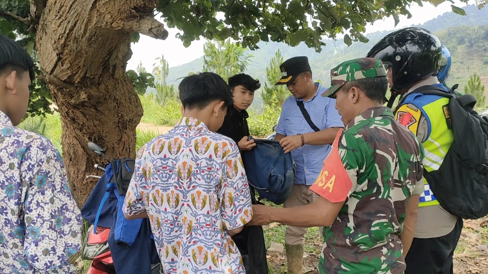 Wartacianjurnews.com Cianjur – Sejumlah pelajar SMK yang kedapatan sedang asyik nongkrong, di sebuah tempat wisata Bukit Trawangan, di Desa Cibadak Kecamatan Cibeber, digeledah petugas gabungan Pemerintah Desa Cibadak, Rabu (22/11/2023).