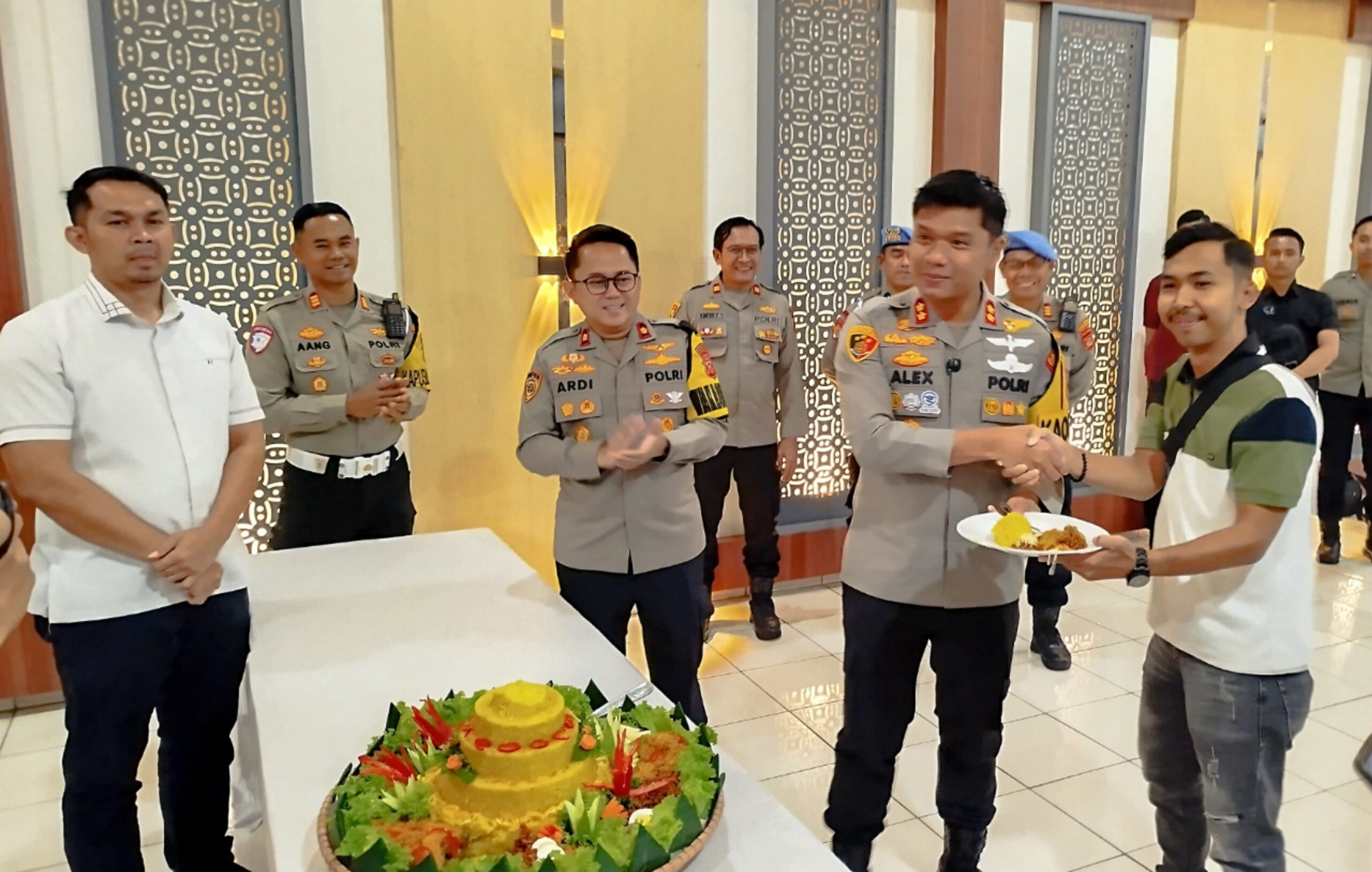 Rangkaian kegiatan syukuran ditandai dengan pemotongan tumpeng oleh Kapolres bersama Wakapolres Cianjur dan perwakilan anggota muda PWI Kabupaten Cianjur dari media BeritaSatu. Tumpeng diserahkan secara simbolis sebagai bentuk apresiasi terhadap peran insan pers.