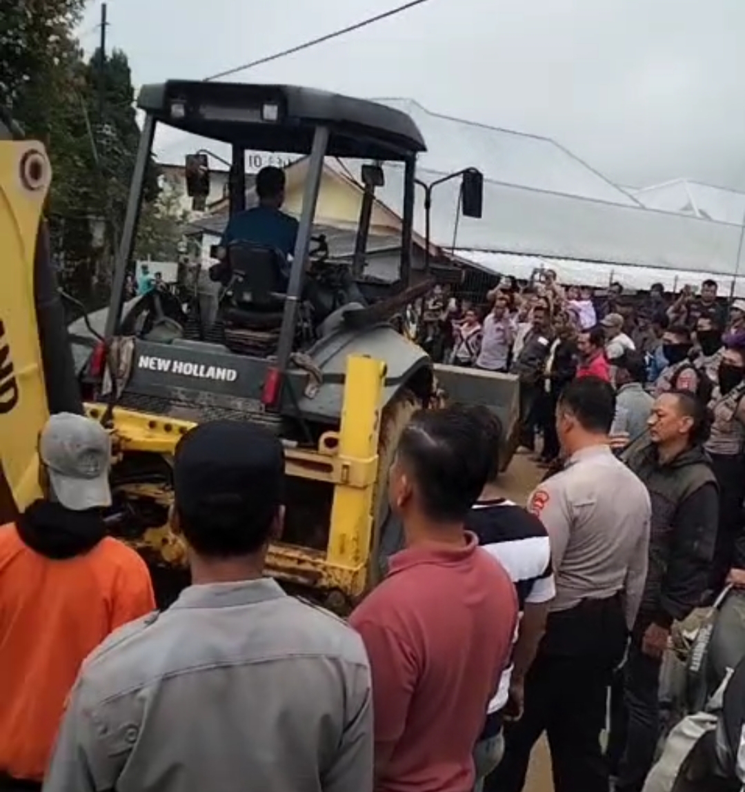 Aksi tersebut merupakan buntut penahanan alat berat beberapa waktu saat di jalan RT 02 dan RW 03.