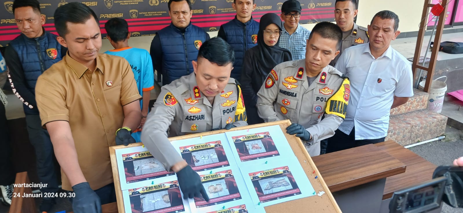 “Terduga S melakukan perbuatan yang sama sekitar tahun 2011 di Bakahuni, Lampung dan aksi kedua terjadi pada bulan Juli 2023 dengan TKP di Cianjur,” kata AKBP Aszhari Kurniawan saat jumpa pers di Mapolres Cianjur, Rabu, (24/01/2024).