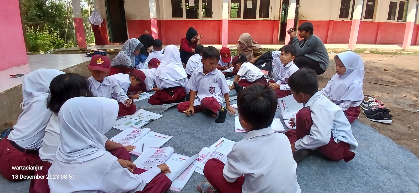 Pantauan Wartacianjurnews.com Senin (18/12/2023), tampak para murid dengan antusias mengikuti giat belajar meski hanya berlantaikan karpet.