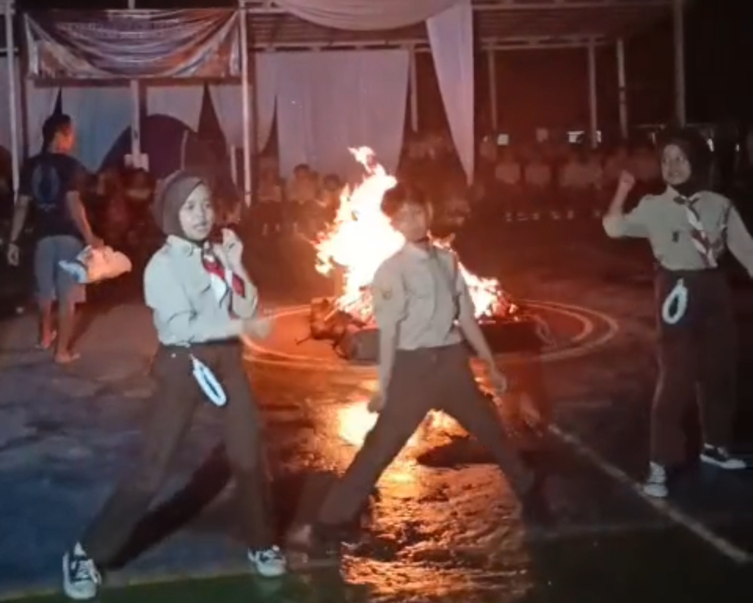 Semangat Api Warnai Penerimaan Tamu Penggalang SMPN 3 Cianjur