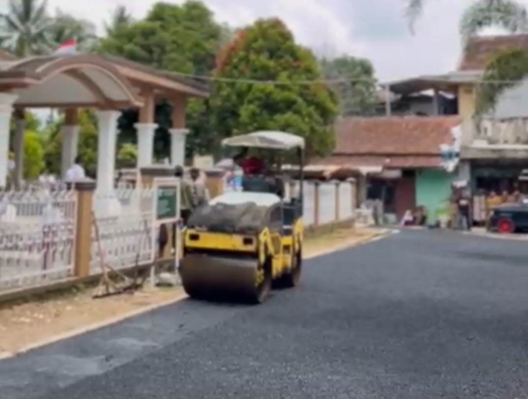 DIBANGUN, akses jalan di Kampung Cipadang tengah di hotmix. (Dok. Pemdes Cikaroya Warungkondang).
