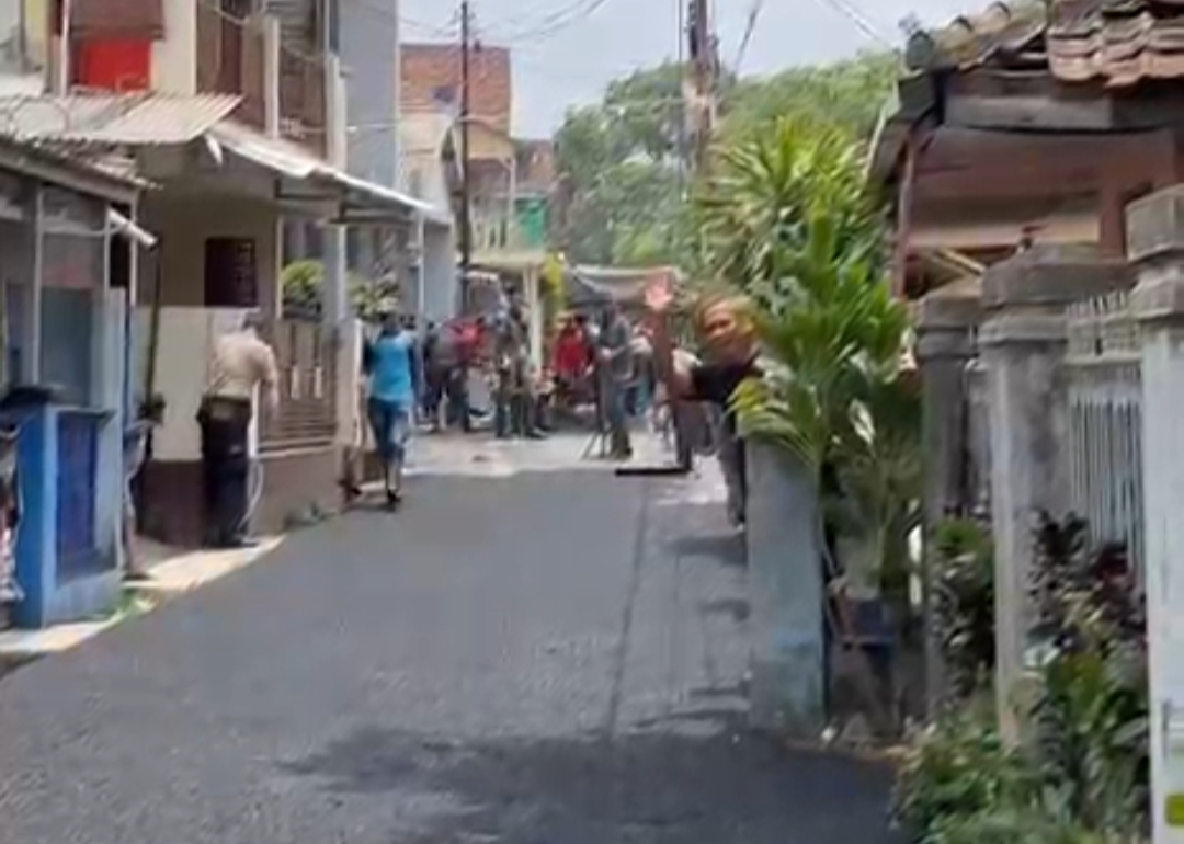 DIBANGUN, akses jalan di Kampung Cipadang tengah di hotmix. (Dok. Pemdes Cikaroya Warungkondang).