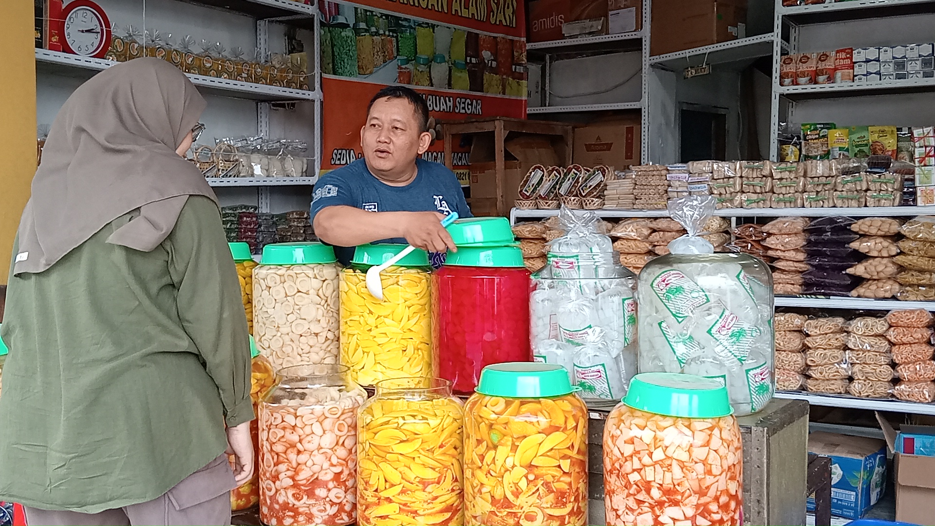 “Hampir 75 persen pembeli membeli manisan untuk oleh-oleh sendiri. Mau itu manisan mangga dan pala. Pembeli jarang yang beli keringan,” ujarnya.
